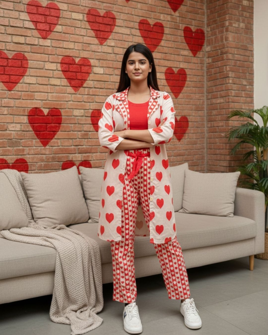 Valen Love Womenβs Coat Set Gift Box Valentine Outfit with Roses