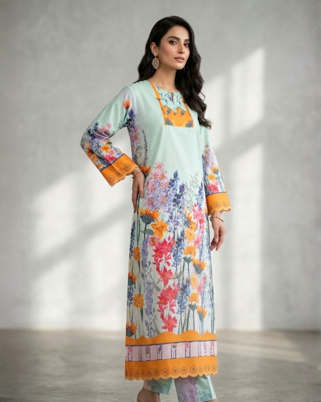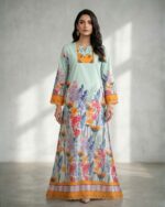 Elegant and comfortable Gradient Floral Printed Kaftan made from premium Silky Lawn fabric. Designed with a luxury look and relaxed fit, perfect for Eid, festive occasions, and everyday wear.
