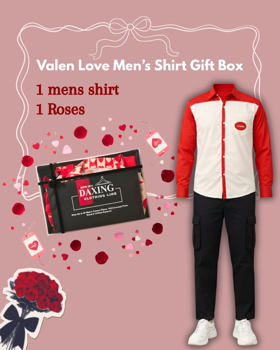 Valen Love Menโs Shirt Gift Box Valentine Special with Roses